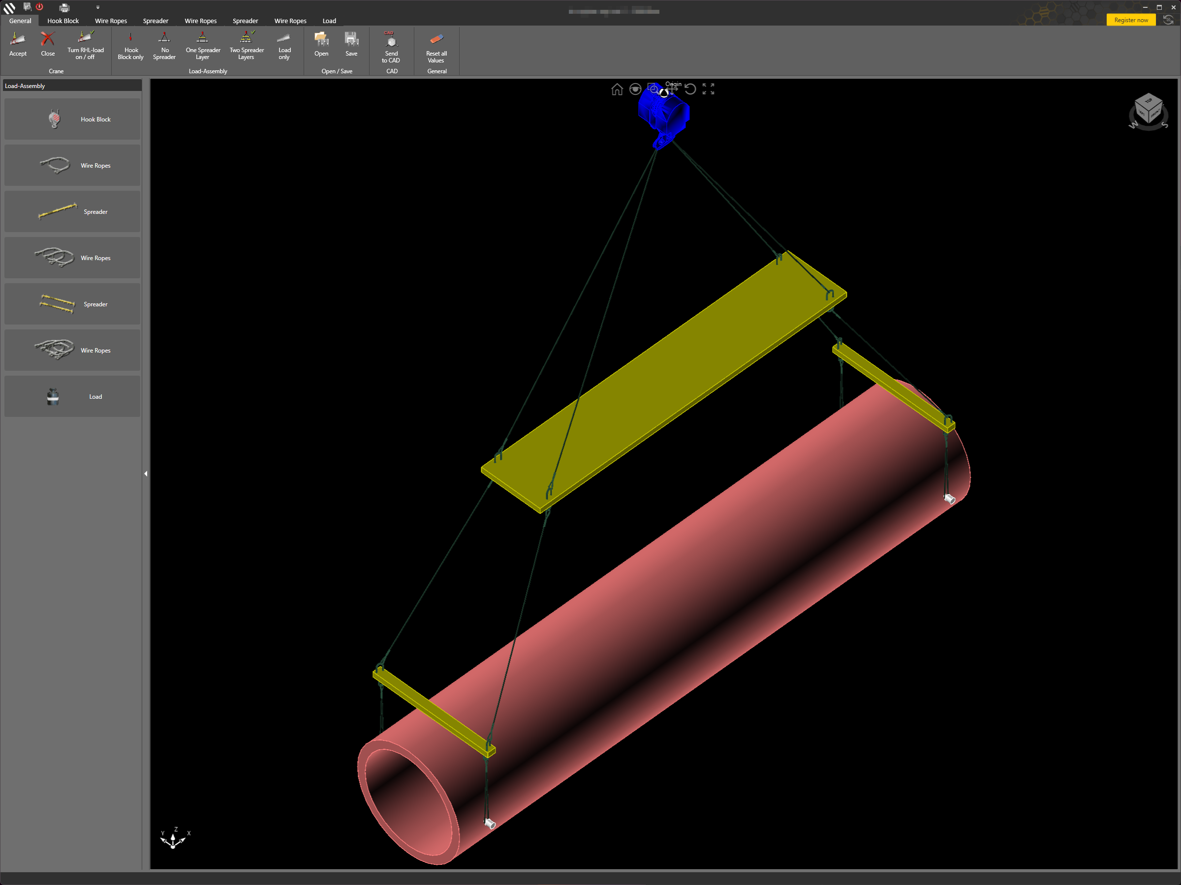 Der RHL-Konfigurator (Rigging, Hook & Load) ermöglicht die visuelle Konfiguration des Anschlagmittels direkt in CRANEbee. Aus vordefinierten Komponenten wie Drahtseilen, Spreizern und Ankerpunkten wird das Anschlagmittel Schritt für Schritt zusammengestellt und in Echtzeit als 3D-Modell dargestellt.